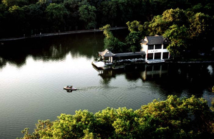浮莊坐落在包河東大島上。因其遠觀如一片柳葉浮于水面之上,又因島上建筑類似古代村莊,故名浮莊。