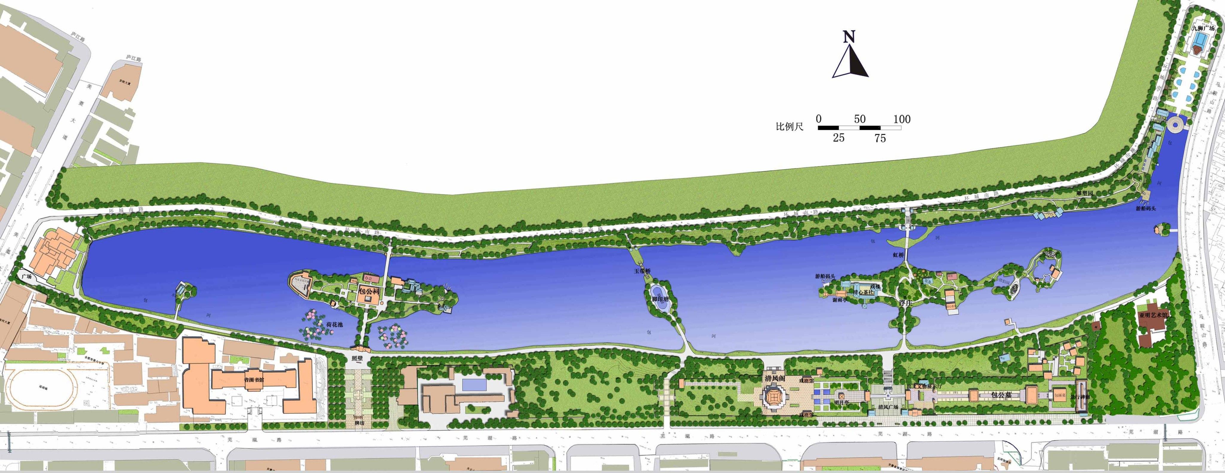 包公園,簡稱包園,位于安徽省合肥市包河區(qū)蕪湖路72號,始建于北宋嘉祐七年(1063年),是為紀念北宋著名清官包拯而修建的園林。東起馬鞍山路、西至徽州大道、南傍蕪湖路、北臨環(huán)城路。占地34.5公頃,其中水域面積15公頃,總體布局為開放式,主要由包公祠、包公墓、清風閣、浮莊等景點組成。