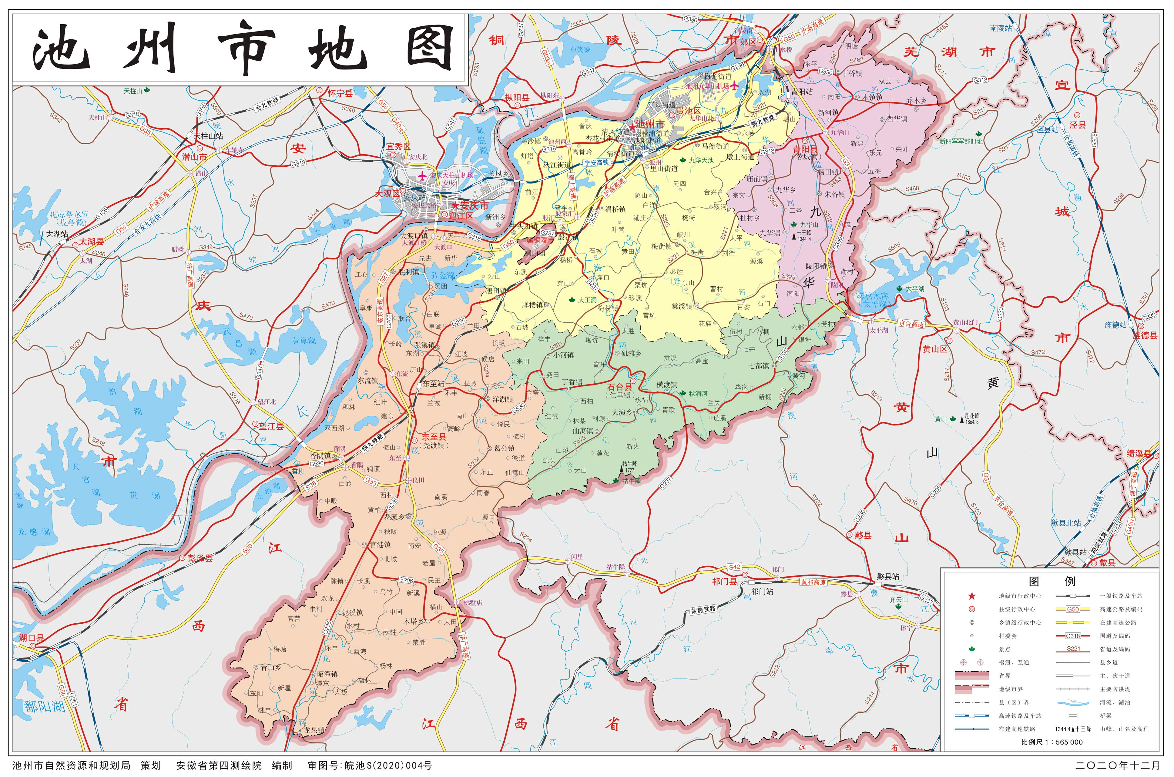 池州市轄1個區(qū)、3個縣: