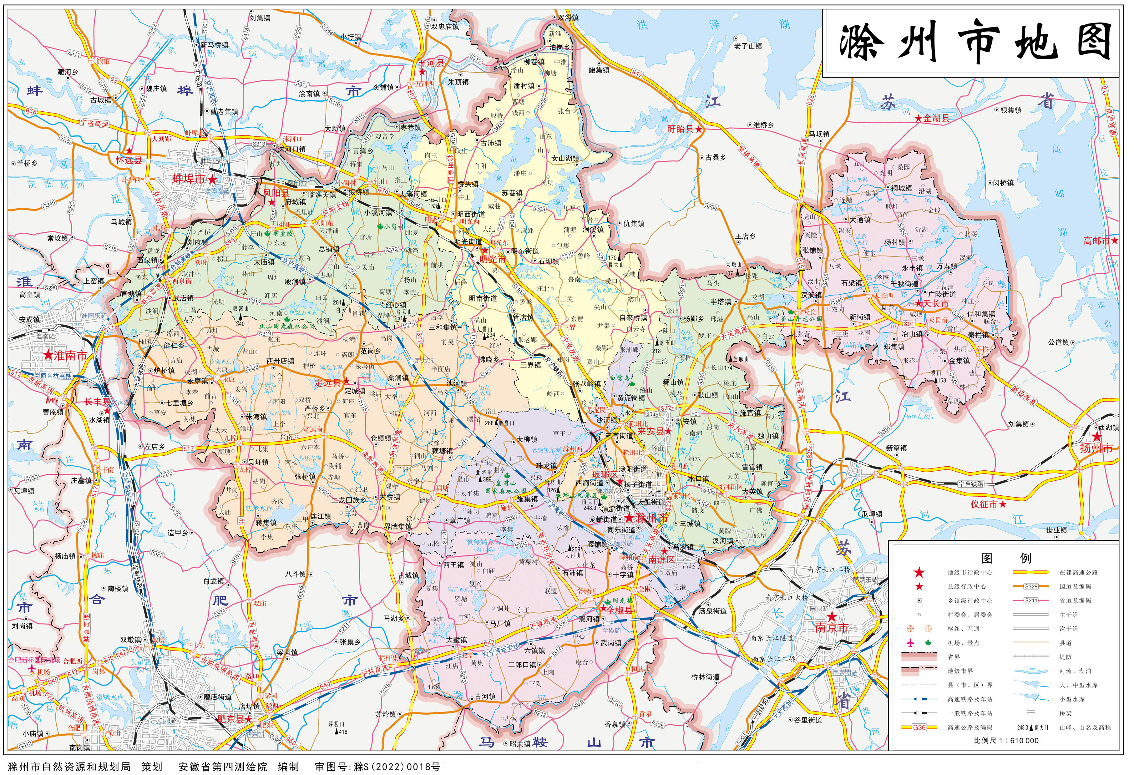 滁州市轄2個(gè)市轄區(qū)、4個(gè)縣,另外代管2個(gè)縣級(jí)市: