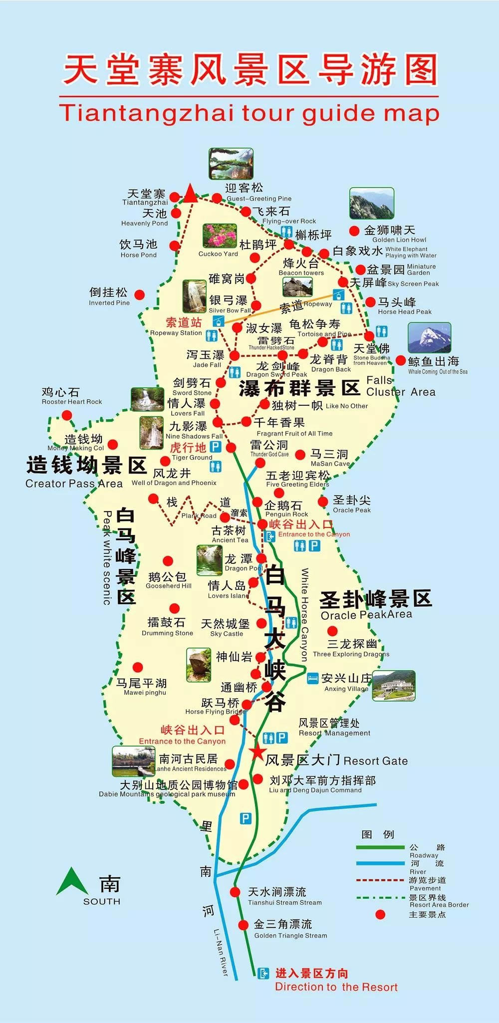 景區(qū)總面積120平方公里,境內(nèi)千米以上的高峰25座,天堂寨最高峰為大別山主峰之一。其主要景點(diǎn)有白馬大峽谷、龍劍峰、白馬峰、瀑布群等 。
