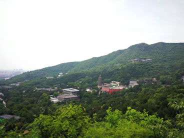 虎頭山峰狀若虎頭,而整座山恰似一只臥虎,山名恰如其分;該山史籍中曾名覺山、翠微山,東麓建有長安寺和靈光寺。