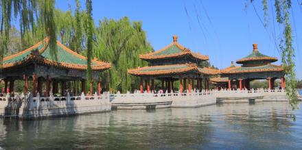 北海公園全園以北海為中心,遼、金、元在此建離宮,明、清辟為帝王御苑,屬于中國古代皇家園林。