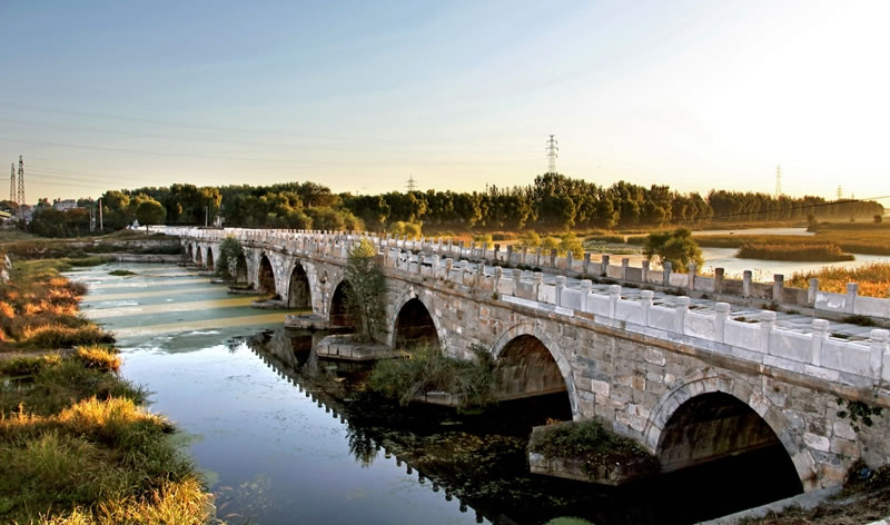 琉璃河大橋 琉璃河大橋,位于琉璃河段的京石公路上,是房山區(qū)境內(nèi)最大的石橋,其規(guī)模僅次于盧溝橋。琉璃河又名大石河,古稱圣水,流經(jīng)這里東行,匯入拒馬河,每到汛期,原建木橋常被沖毀。嘉靖十八年(1539年),修此橋。嘉靖二十五年建成。石橋南北向,橫跨琉璃河上,全長(zhǎng)165.5米,寬10.3米,高8余米,共11孔,中孔最大。拱券正中雕有精美的獸頭。橋體全部用巨大的石塊砌筑,橋上建有實(shí)心欄板和望柱,其上均雕有海棠線等紋飾。嘉靖四十年(1561年),向南北兩方督修路堤。堤寬19.8米,高近4米,總長(zhǎng)約2000米。堤面鋪以巨型條石。為傳說(shuō)中的五里長(zhǎng)街。從修橋到路堤建成,前后20余年。琉璃河石橋,是北京地區(qū)保存較為完好的古代石橋之一。 2013年3月,琉璃河大橋被國(guó)務(wù)院公布為第七批全國(guó)重點(diǎn)文物保護(hù)單位。