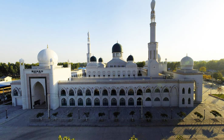 竇店清真寺 2011年8月9日,竇店新建清真寺破土動(dòng)工,2017年7月1日竣工,并于開齋節(jié)當(dāng)天正式啟用。 竇店清真寺占地14958平方米,建筑面積12142平方米,能同時(shí)容納1500人禮拜。清真寺呈回字形布局,設(shè)有大殿、副殿、講堂、辦公室、接待室、會(huì)議室、展室、埋體房、洗浴室、餐廳等,大殿位于正中央,形成“眾星捧月”的建筑風(fēng)格。