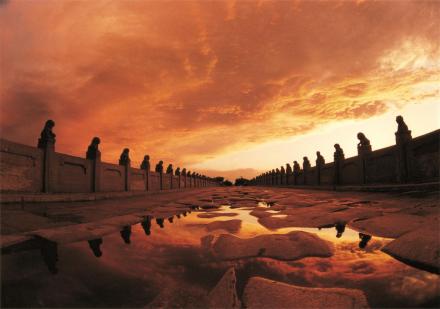 盧溝橋文化旅游區(qū),地處北京西南,西臨永定水,南望京港澳高速路,由盧溝橋、宛平城、中國(guó)人民抗日戰(zhàn)爭(zhēng)紀(jì)念雕塑園等景區(qū)組成,是一個(gè)集歷史、文化、藝術(shù)和革命傳統(tǒng)教育為一體的旅游觀光勝地。盧溝橋位于北京市西南15千米豐臺(tái)區(qū)永定河上,距廣安門10千米,是北京現(xiàn)存最古老的石造聯(lián)拱橋,始建于金大定29年(1189年),建成于金章宗明昌3年(1192年)。盧溝橋全長(zhǎng)266.5米,寬9.3米,下分11個(gè)券洞。橋身兩側(cè)共有石雕護(hù)欄望柱281根。柱頭上雕有伏臥的大小石獅共501只,形態(tài)各異,栩栩如生。