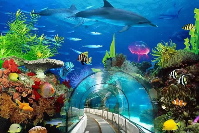 海洋生態(tài)展示——向游人展示海洋生物,包括植物、魚(yú)類(lèi)、海洋哺乳類(lèi)動(dòng)物等。