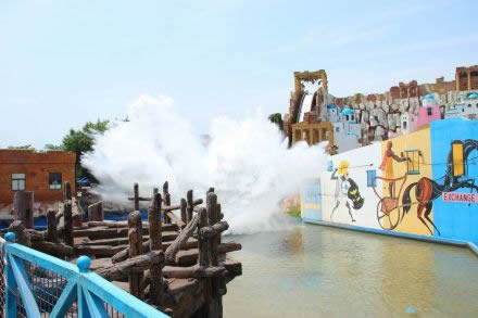 飛越牛奶河:旋轉(zhuǎn)的水上飛機,旋轉(zhuǎn)速度4.32米/秒,船艙最高運行速度6.7米/秒,共9個船艙。