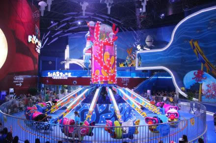 潛水魚:緩緩旋轉(zhuǎn)的魚群可以帶領(lǐng)游客上升和跌落,這里還是主題燈光秀的焦點所在。
