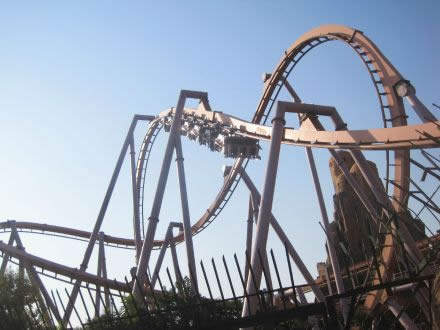 叢林飛車:特別之處在于它提供了兩次提升的大幅度跌宕運動,創(chuàng)造跌落、彎轉(zhuǎn)和翻滾的感受。