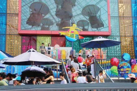 歡樂世界主題漂流:可以在15分鐘環(huán)球漂流中,欣賞到兩岸及半空37個各大洲最有代表性的場景,近400個身著各地民族服飾的人形木偶。