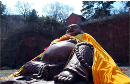 彌勒佛:千佛閣上坐神佛,納得天下福滿(mǎn)門(mén)。千年香樟木雕彌勒佛,作為戒臺(tái)寺唯一一尊露天佛,常得日月之光,納天地靈氣,立于千佛閣上修得萬(wàn)佛之心,用萬(wàn)世不變的歡喜笑顏,用大肚笑納天下事,也容載著天下人的希望。彌勒佛即未來(lái)佛,俗稱(chēng)大肚彌勒,他強(qiáng)調(diào)要大度能容,不要計(jì)較人世間的是非憎愛(ài)。大肚彌勒寓神奇于平淡,示美好于丑拙,顯莊嚴(yán)于詼諧,現(xiàn)慈悲于揶揄,代表了中華民族寬容、和善、智慧、幽默、快樂(lè)的精神。香樟木質(zhì)地堅(jiān)硬,且具香氣,是明清時(shí)期宮廷木器三大主要用材之一。香樟木年份越久越珍貴,千年香樟木自然就成了可遇不可求的無(wú)價(jià)之寶。戒臺(tái)寺此件木雕大佛系為一整塊千年香樟木根雕,雕工精美,形態(tài)可鞠,盤(pán)腿而坐,袒胸露腹,自然形態(tài)惟妙惟肖。