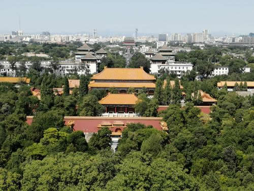 元代,這里有座小土丘,名叫青山,屬于元大內(nèi)后苑的范圍。明代在北京修建皇宮時(shí),曾在這里堆過煤,所以又稱煤山。由于它的位置正好在全城的中軸線上,又是皇宮北邊的一道屏障,所以,風(fēng)水術(shù)士稱它為"鎮(zhèn)山"。明清時(shí)園內(nèi)種了許多果樹,養(yǎng)過鹿、鶴等動(dòng)物,因而山下曾叫百果園,山上曾叫萬歲山。