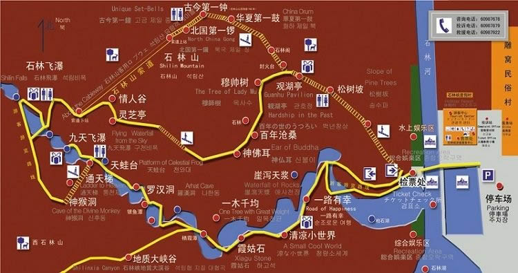 石林峽中的石、峽、水、峰、林五大特點構(gòu)成了獨特的景觀又各具千秋。賞北國石林、觀九天飛瀑、游峽谷險峰、尋石林三絕是石林峽四大瀏覽特色。這里的石林高峻陡峭、片片根根直立,巨石、奇石遍布谷中,整個峽谷林木郁郁蔥蔥,奇松怪柏蒼翠挺拔,幽長的峽谷清寂秀麗,九瀑十八潭點綴其中,如一幅惟妙惟肖的天然畫卷,頗具北方的壯美氣勢,又顯江南的秀麗多姿。石林峽有東西兩片石林,令人嘆為觀止,遠觀氣勢宏偉,近觀形態(tài)各異,異彩紛呈,有的如巨筆參天,有的如玉筍穿空,有的如槍戟林立,有的如雄獅出征,更有似玉女婷婷,神猴探月,龍盤玉柱,老象出山者,美輪美奐,美不勝收。有詩贊曰:“早知石林生南國,至此方知讀書淺”。有聯(lián)贊曰:"探峽谷感受神秘清幽,登高峰盡攬千山萬壑"。