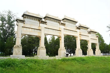 祭祀?yún)^(qū)主要指陵區(qū)各陵園的地上建筑和陵區(qū)的先導(dǎo)部分。地面建筑主要有神路、石牌坊、大紅門、大碑樓、石像生、神橋和陵園等。