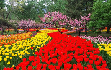 海棠園:北京植物園海棠園是中國最大的,收集海棠品種最多的海棠專類園,總面積31700平米,共展示海棠種和品種共八十余個,八百多株。整個海棠園地勢西高東低,西北面借天然的西山做為背景屏障。園區(qū)在原有地形的基礎(chǔ)上,做出了高低起伏,錯落有致的地形結(jié)構(gòu)。