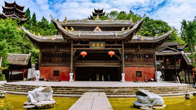 九黎宮位于景區(qū)中心苗族文化廣場右邊,是蚩尤九黎城最重要的標(biāo)志性建筑,九黎宮科學(xué)地利用山水自然資源,因地制宜,依山造勢,退山而居。宮高99米,呈十一開間,象征“九九歸一”之意。建筑的形式有四合院、吊腳樓、沖天樓,宮內(nèi)有苗族接龍?zhí)谩駱、虎口堂、四合院、八字朝門和吊腳樓群等,是彭水展示苗族文化、民風(fēng)民俗的博物館,是迄今為止最大的吊腳樓群之一,被列入大世界基尼斯之最。