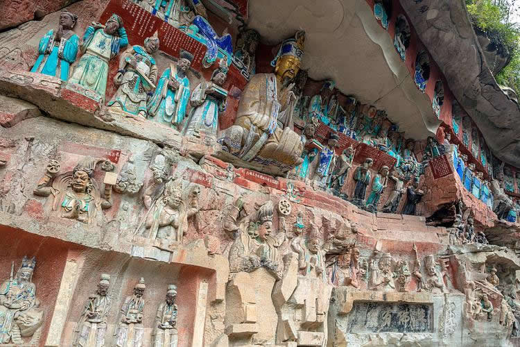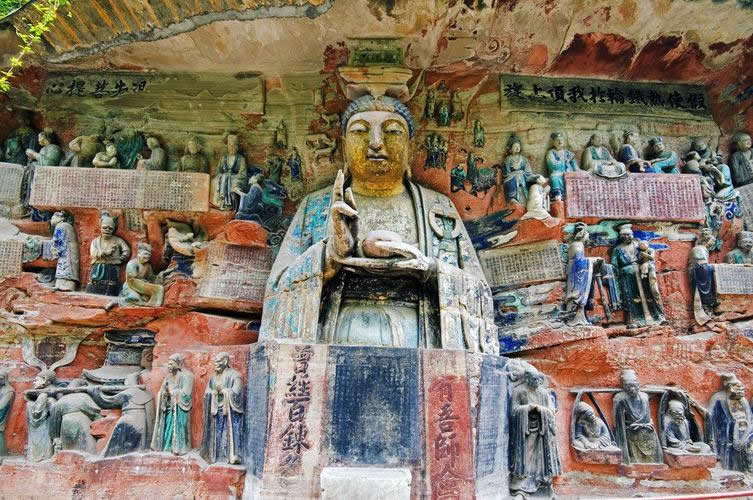 重慶市的大足石刻以其規(guī)模宏大、雕刻精美、題材多樣、內(nèi)涵豐富和保存完整而著稱于世。它集中國佛教、道教、儒家“三教”造像藝術(shù)的精華,以鮮明的民族化和生活化特色,成為中國石窟藝術(shù)中一顆璀璨的明珠。它以大量的實物形象和文字史料,從不同側(cè)面展示了九世紀(jì)末至十三世紀(jì)中葉中國石刻藝術(shù)的風(fēng)格和民間宗教信仰的發(fā)展變化,對中國石刻藝術(shù)的創(chuàng)新與發(fā)展做出了重要貢獻(xiàn),具有前代石窟不可替代的歷史、藝術(shù)和科學(xué)價值。許多歐洲人、尤其是法國人,對大足石刻寵愛倍加。