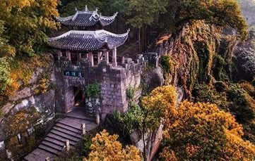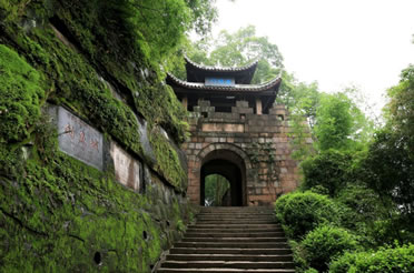 護國門重慶十大標志性旅游景觀之一。護國門為釣魚城的標志性建筑,位于城南第二道防線上,在釣魚城題刻的右側(cè)上部。在釣魚城8座城門中,護國門是規(guī)模最大的一道雄關(guān),城門洞高3.24米,寬2.45米,進深6.42米。城臺上為重檐歇山頂式城樓,高7米。其樓北倚峭壁,南臨懸崖,旁有古榕交柯,蔚為壯觀。當年,釣魚城軍民曾在護國門前面的峭壁上開鑿石穴,架梁鋪木,施以棧道出入。情況緊急之時,可迅速地將橫梁上的木板抽掉,使其通道斷絕,猶如我國北方古城的城門吊橋。如今,棧道石穴猶存。在護國門平頂門道南壁和后門洞東側(cè),還保留有宋代的城門構(gòu)件和登城的石級。