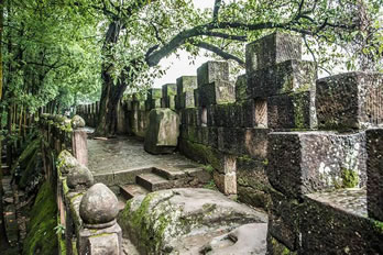 忠義祠位于護國寺右側(cè),與寺內(nèi)藥師殿僅一墻之隔,有門洞與護國寺相通,也可從護國寺右側(cè)小道進入。始建于明弘治七年(1494年),原名“王張祠”,祀王堅、張玨二將忠烈。明弘治十二年(1499年),合州知州宋琢見“王張祠”簡陋而集資整修。明正德十二年(1517年),合州知州佘崇鳳刻石立碑并培修祠宇。清初,“王張祠”遭兵亂,片瓦無存。清乾隆二十四年(1759年),合州知州王采珍重修,立余玠、王堅、張玨、冉琎、冉璞5位牌位祀祭,改祠名為“忠義祠”。后歷經(jīng)培修。忠義寺整座建筑由正廳、耳房和左右?guī)拷M成,采用均衡對稱式,在縱軸線主要建筑物相對對峙,構(gòu)成大門進出的三合院。整座庭院東西寬20米,南北縱深30米。進入石坊形大門是一個院壩兩面的廂房,拾級而上至正廳。迎面高懸“忠義千秋”金字巨匾,匾下祭臺上排列余玠、王堅、張玨、冉琎、冉璞牌位。祭臺正面有祝文:“維神才兼武,志秉忠貞。畫地成城,據(jù)形勝而保蜀土;協(xié)力戰(zhàn)守,遺魚餅以退元戎。忠誠貫日星,先后相繼;大節(jié)凌霄漢,古今照臨。茲屆仲春修祀典,肅陳籩豆,伏維來歆。尚饗。”廳堂楹柱有華國英撰寫的對聯(lián),上聯(lián)“持竿以釣中原,二三人盡瘁鞠躬,直拼得蒙哥一命”;下聯(lián)“把盞而澆故壘,十萬眾披肝瀝膽,竟不圖王立二心”。忠義祠內(nèi)有宋孝宗時期碑文4塊,宋光宗時期2塊,宋寧宗時期5塊,乾道年間以后22塊,其中記錄釣魚城之戰(zhàn)史跡的12塊。