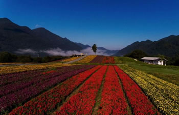 云中花海行程約13.5公里,有繁花樹影、嫣彩織帶、錦臺繽紛、錦繡花街等7大景點(diǎn),種植了硫華菊、波斯菊、金雞菊、紫松果菊、大濱菊、黑心菊、金盞菊、翠菊、天人菊等50余種高山花卉,花期為5~10月。