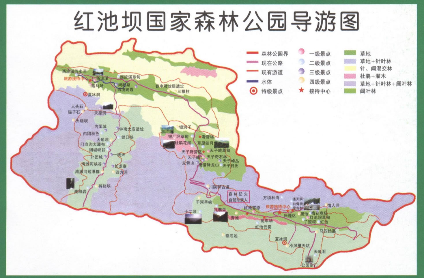 紅池壩內(nèi)有云中花海、天子城草原、西流溪、團(tuán)城等四大區(qū)域,近50個風(fēng)光景點(diǎn)。景區(qū)內(nèi)已能提供四星級酒店別墅、木屋別墅、露營和農(nóng)家樂等多種規(guī)格、多種檔次的住宿服務(wù)供游客選擇,價格從100多元至300多元不等,并可同時接待3000多名游客。游客還可以選擇電瓶車、自行車和步行道等多種形式游覽景區(qū)。