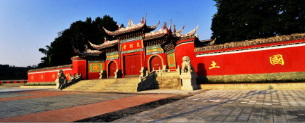 雙桂堂又名“福國寺”、“萬竹山”,由破山海明禪師于清順治十年(公元1653年)創(chuàng)建,因有兩株桂花樹而得名,座落在三峽腹地—重慶市梁平金帶鎮(zhèn)境內,是全國重點寺廟、市級重點文物保護單位,享有“西南佛教禪宗祖庭”之美譽。 [30]占地160余畝,有關圣殿、彌勒殿、大雄殿、文殊殿、破山塔、大悲殿、藏經(jīng)樓,位置從前到后,地勢由低到高,平行排列在中線上,均勻而對稱;客堂僧寮分布兩旁,天井海壩點綴其間,主次分明,虛實相生,自成體系;回廊曲巷,長亭短榭,廊巷緊連,巧妙地連接成一個結構恢宏的宮殿式建筑群。