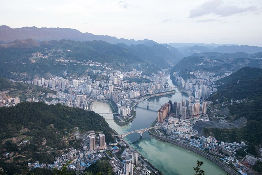 彭水縣,位于鄂黔隆起帶,向四川中臺坳下滑的斜坡上,形成西北高東南低的地勢特征。海拔190~1860米,相對高差1670米。地處武陵山區(qū),地勢西北高而東南低。地形分為構造剝蝕的中、低山地形。地貌類型復雜,自然環(huán)境各異,“兩山夾一槽”是彭水地貌的主要特征。各類地貌中丘陵河谷區(qū)占13.39%,低山區(qū)占52.83%,中山區(qū)占34.03%。