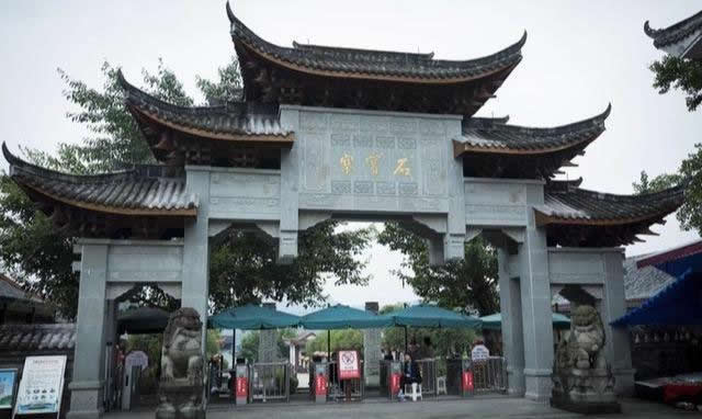 “江上明珠”牌坊位于連接新石寶鎮(zhèn)與石寶寨的大橋橋頭,牌坊上橫書“江上明珠”4個(gè)大字,為1992年時(shí)任中央政治局委員、國務(wù)院副總理田紀(jì)云在石寶寨調(diào)研時(shí)的題詞。
