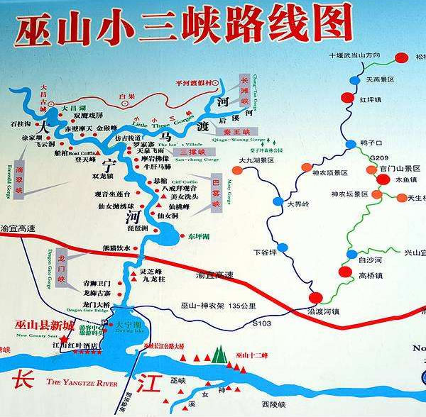 巫山小三峽·小小三峽景區(qū),位于重慶市巫山縣巫峽鎮(zhèn)寧江路。巫山小三峽由大寧河下游流經(jīng)巫山境內(nèi)的龍門峽、巴霧峽、滴翠峽組成,與長江大三峽毗鄰。巫山小小三峽位于大寧河滴翠峽處的支流馬渡河上,是長灘峽、秦王峽、三撐峽的總稱,小小三峽是大寧河小三峽的姊妹峽,因比大寧河小三峽更小,故名“小小三峽”。