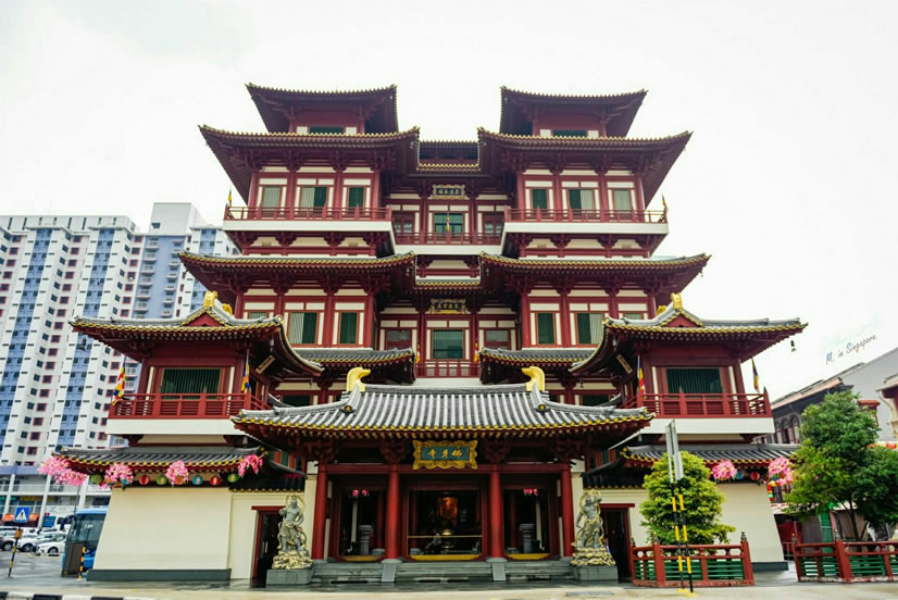 新加坡佛牙寺 新加坡佛牙寺坐落于牛車水碩莪街,樓高五層,全按中國唐代佛寺風(fēng)格建筑而成。第一層是山門、鐘樓、鼓樓、觀音殿、百龍殿。第二層是阿蘭若藏經(jīng)閣及展覽廳、文殊殿,夾層樓是蓮芯茶坊、地藏殿、法堂、戒光堂、諸山長老德像紀念館。第三層是普賢殿、龍華院—佛教文物館。第四層是靈光殿、佛牙舍利金塔。第五層頂樓有萬佛閣、毗盧遮那大光明經(jīng)咒轉(zhuǎn)經(jīng)輪藏、萬福光明燈和胡姬花園。