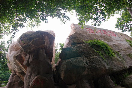 釣鰲臺位于東山縣風(fēng)動石右前側(cè)黃道周紀(jì)念館旁,為一巨大石巖坐山而起,狀如船臺。相傳南宋末年,宋室少帝避元南逃筑“東京”于東山時,一真人坐法于此,忽然間山崩海嘯,“東京”城沉陷入海,真人急念真經(jīng)一腳蹬石升天而遁,故留下一處“仙腳印”。后人作“銅山十八景”詩,稱其為“仙腳獨(dú)步騰云漢”。其巖壁東面有民國二十四年湖南漢壽朱熙題鐫:“海晏河清”;下有一口“龍泉”。 釣鰲臺臨海高峙,明時銅山三大書院(崇文書院、東璧書院、南溟書院)筑于周圍,文人士子常登其上,望海騁懷,擊石而歌,以期金榜題名,獨(dú)占鰲頭,遂有前人孫堯天鐫“釣鰲臺”于石。
