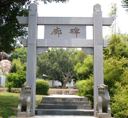 東山碑廊位于東山風(fēng)動石、關(guān)帝廟與古城墻之間的一片坡地。碑墻每隔一段鑿開或方或圓的門洞,兩面墻腳均以青石板鋪就平整光滑的廊道,可雙面觀賞古碑,又顯空靈開朗。墻頭仿懸山屋頂式樣,飾以碧綠琉璃瓦,在太陽底下,流光溢彩。碑墻的延伸,或挺然獨(dú)立,或依傍大石,或緊貼巖壁,在那片坡地上圈出一個近似方形的園子。碑廊的古碑,有告示、紀(jì)念、頌德、標(biāo)志、民約、重要?dú)v史人物墓志、墓碑等,內(nèi)容涉及明清時期東山的政治、經(jīng)濟(jì)、軍事、文化、民俗等諸多方面。它們富有歷史、藝術(shù)價值和十分重要的證史、補(bǔ)史與借鑒的作用。