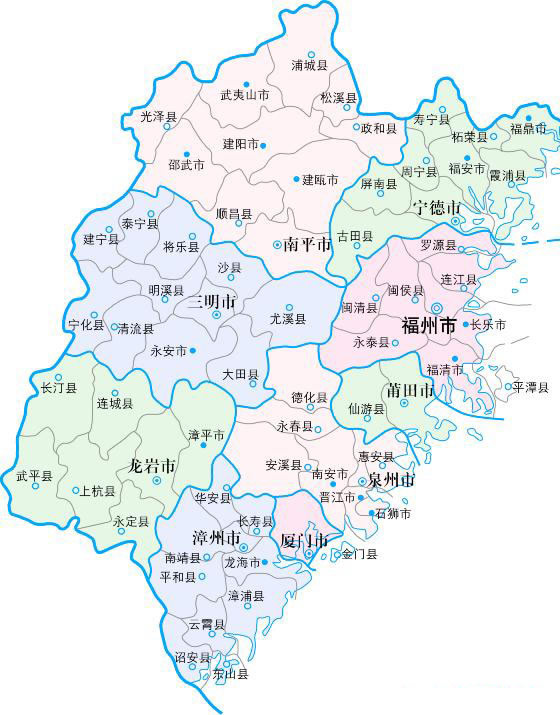 | 福建位于中國大陸的東南沿海,東臨太平洋和臺灣隔海相望,西北部高山連綿,中部丘陵起伏,沿海平疇沃野,海岸曲折,島嶼棋布。