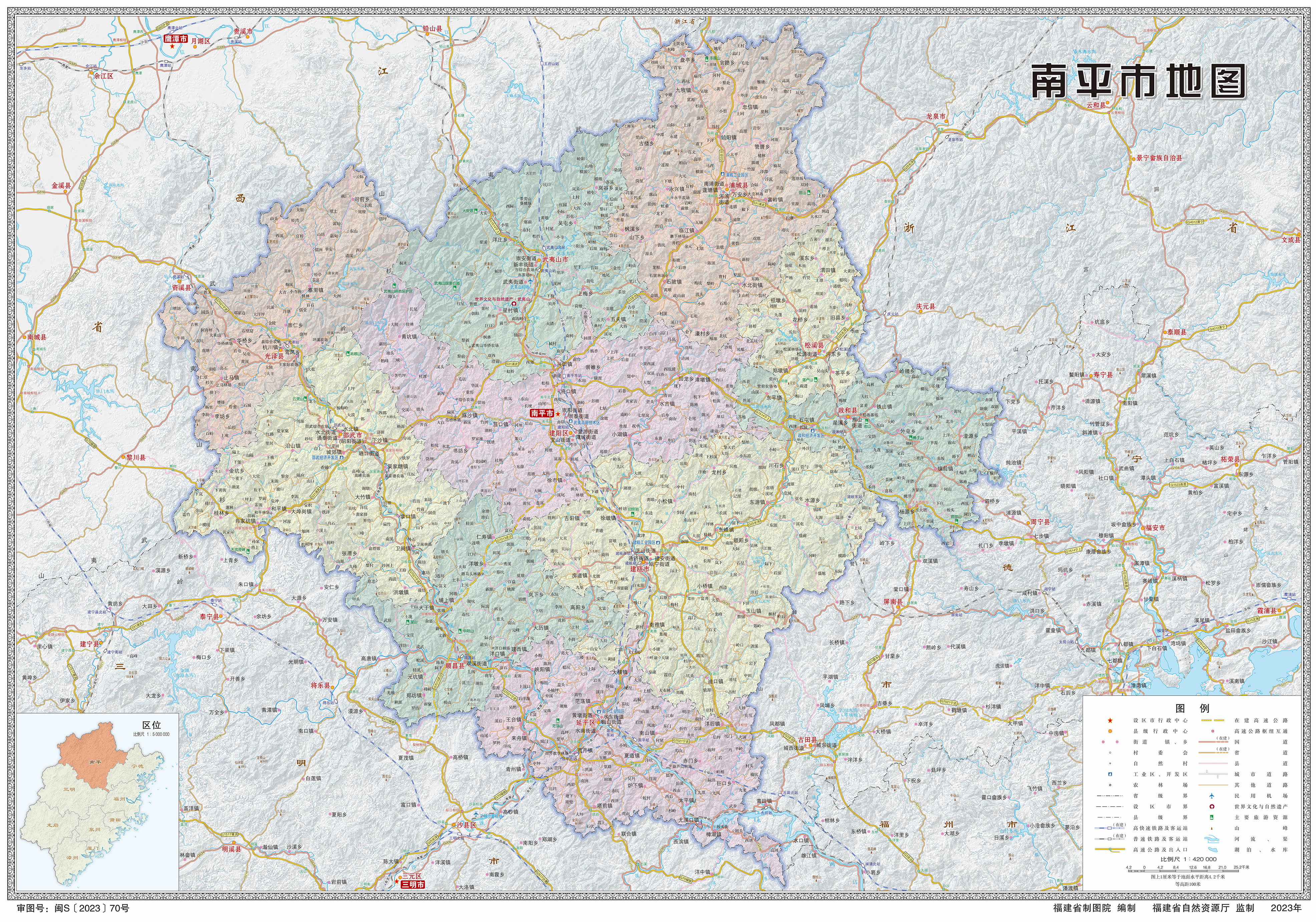 南平市轄2個(gè)市轄區(qū),5個(gè)縣,代管3個(gè)縣級(jí)市: