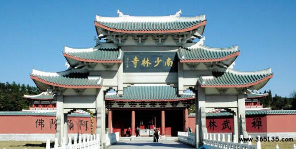 莆田南少林在福建省莆田市荔城區(qū)西天尾鎮(zhèn)北部層巒疊嶂,聞名天下的南少林寺就在這里。莆田南少林寺原名林泉院,據(jù)考古認(rèn)為“林泉院至遲在唐代或唐末即已存在”,但具體創(chuàng)建年代有待進(jìn)一步考證。林泉院的習(xí)武之風(fēng),緣起于唐初,它的經(jīng)磨歷劫,也與武風(fēng)有關(guān)。傳說,李世民登基后,輔公祏部將路得才聚眾東南沿海為非作歹,鬧得民不聊生。那些歹徒行蹤不定,聚散無常,如果派大軍圍剿,無異用拳頭打跳蚤,勞民傷財(cái),且難奏效。唐太宗只好把已封為大將軍的少林寺方丈曇宗找來,請(qǐng)他派武藝高強(qiáng)的僧兵懲治海盜。曇宗派十三棍僧之一的道廣帶領(lǐng)五百僧兵入閩平暴。暴亂平息后,沿海人民挽留這些救苦救難的活菩薩。道廣也感到盛情難卻,就回到嵩山少林寺稟告曇宗方丈。方丈當(dāng)即道出一偈:“傍海平盜日月久,九蓮山下有宿頭。南北千里同一寺,大乘禪在心中留。”道廣根據(jù)北少林方丈的偈語,找到了當(dāng)時(shí)就有名氣,且地形酷似嵩山的林泉院擴(kuò)寺定居。林泉院也就成為江南的少林分寺。該寺所在的林山村周圍有九座山圍成一圈,形如九瓣蓮花,寺院坐落在花心的位置上,因名九蓮山少林寺,俗稱南少林。清朝初年,各地抗清志士、武林俊彥紛紛來到具有習(xí)武傳統(tǒng)的南少林,把它作為反清復(fù)明的基地。由于叛徒的出賣,南少林被官軍攻陷,僧眾多被殺戮,寺院被夷為平地。沖出火海的武僧流落江湖,傳徒授藝,堅(jiān)持抗清斗爭。據(jù)傳,南拳的不少套路出自南少林。由于清廷的輿論封鎖,這一段歷史鮮為人知,只是在民間悄悄流傳。