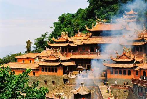 蓬萊祖殿為清水巖的主體建筑,創(chuàng)建于宋代。它依山臨壑,外觀呈“帝”字形,七妙地將人工建筑與自然巖壑融為體,古典雅,輪奐輪閏正殿為重檐山頂?shù)臉情w式建筑,由昊夭口、祖師殿、釋迦樓三部分組成,大殿兩側(cè)有檀樾廳、觀音廳、芳名廳、齋房、客舍等等,鱗次櫛比,相傳共有九十九間。蓬萊祖殿無論在建筑布局還是建筑風(fēng)格以及雕技術(shù)、裝外飾工藝方面都頗具特色,是福建省重點(diǎn)文物保護(hù)單位。 |
