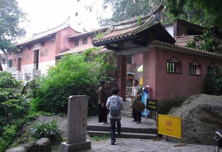 這里巨石峭立,古木參天,近旁的天侶呈瑞,是兩株不同的樹種緊緊地抱在一起,一棵為重陽木、一棵是榕樹,樹根相盤,樹身相抱,樹丫纏繞,如膠如漆,歷經(jīng)歷300多年,宛如一對忠貞不渝的戀人。