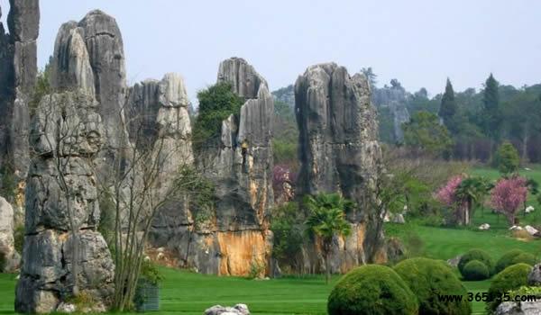 洪云山:位于鱗隱石林景區(qū)西部湖峰坡麓地帶,距鱗隱石林1.5公里,面積約0.56平方公里。上部有溶斗洼地,其中布滿著多種形態(tài)的石芽和石柱,仿佛是天然的盆景園。匯集于溶斗洼地內(nèi)的地表水流,通過灰?guī)r裂隙下滲,自其下部的洪云洞流出,清澈的泉流終年不斷。洪云洞內(nèi)的鐘乳石等化學(xué)溶積物仍在發(fā)育之中,色彩繽紛,光耀奪目,頗為迷人。"主要景點(diǎn)有:桃源活水、巖峽巖、金雞報(bào)曉、老虎撲食、玉兔望月、松鼠伏壁等30多處,十分形象逼真。