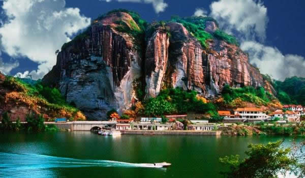 桃源洞因盛產(chǎn)栟櫚樹,古有栟櫚山之稱。風(fēng)景區(qū)起始于唐代,五代后晉年間建有寺廟,到了明代風(fēng)景區(qū)得到較大的發(fā)展。南宋宰相李綱和左正言鄧肅及明代大旅行家徐霞客都曾在此駐足并留有詩句。明代萬歷年間(公元1605年)當(dāng)?shù)匕采叭藘煽に抉R陳源湛捐資建有亭、臺、樓、閣十余處,取“世外桃源”之意改名為桃源洞,并在入口處120米高的赤壁上刻有“桃源洞口”四個大字,從此桃源洞名聞遐邇。這里丹霞地貌形成了眾多的奇峰峭壁,綠海林濤和碧水丹山。