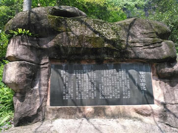 這塊巖石平整如盤。相傳,仙人常降臨這里對弈下棋。巖壁上刻的這兩個篆體字叫“奕臺”!稗呐_”邊上這搖搖欲墜的石頭,風(fēng)吹石動,名曰:“飛來石”。巖壁上還有摩崖石刻“化極磐”三個字,帶有佛教語的味道,意思是:進(jìn)入幻想中的靈變超脫境界。