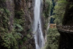 因瀑布頂端形似老鷹的嘴而得名,更是因為生在尤溪的朱熹,游此峽谷時看到溪澗中魚兒自在跳躍,又看到瀑布頂上老鳶自由飛翔,這些牲靈給了少年朱熹任性靈動的感悟,因而寫下“鳶飛魚躍”這個著名的句子老鷹嘴大瀑布之名,就是這樣來的。落差近200米的“鷹嘴飛瀑”,遠看宏偉雄壯,近觀是水霧夢幻。朝陽升起,巨瀑飛沫呈散珠噴霧,日光燭之,幻化成虹,奪目璀璨。
