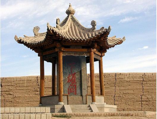 羅城初建于明弘治八年(1495年),由肅州兵備道李端澄主持修建!傲_城”是應(yīng)敵的正面,“凸”字形城墻全部用磚包砌,非常堅固!傲_城”南北兩端建有“箭樓”,是觀望關(guān)西、關(guān)南、關(guān)北烽火的設(shè)施。兩端與外城墻相接,外城墻又與關(guān)城南北的長城相聯(lián)。