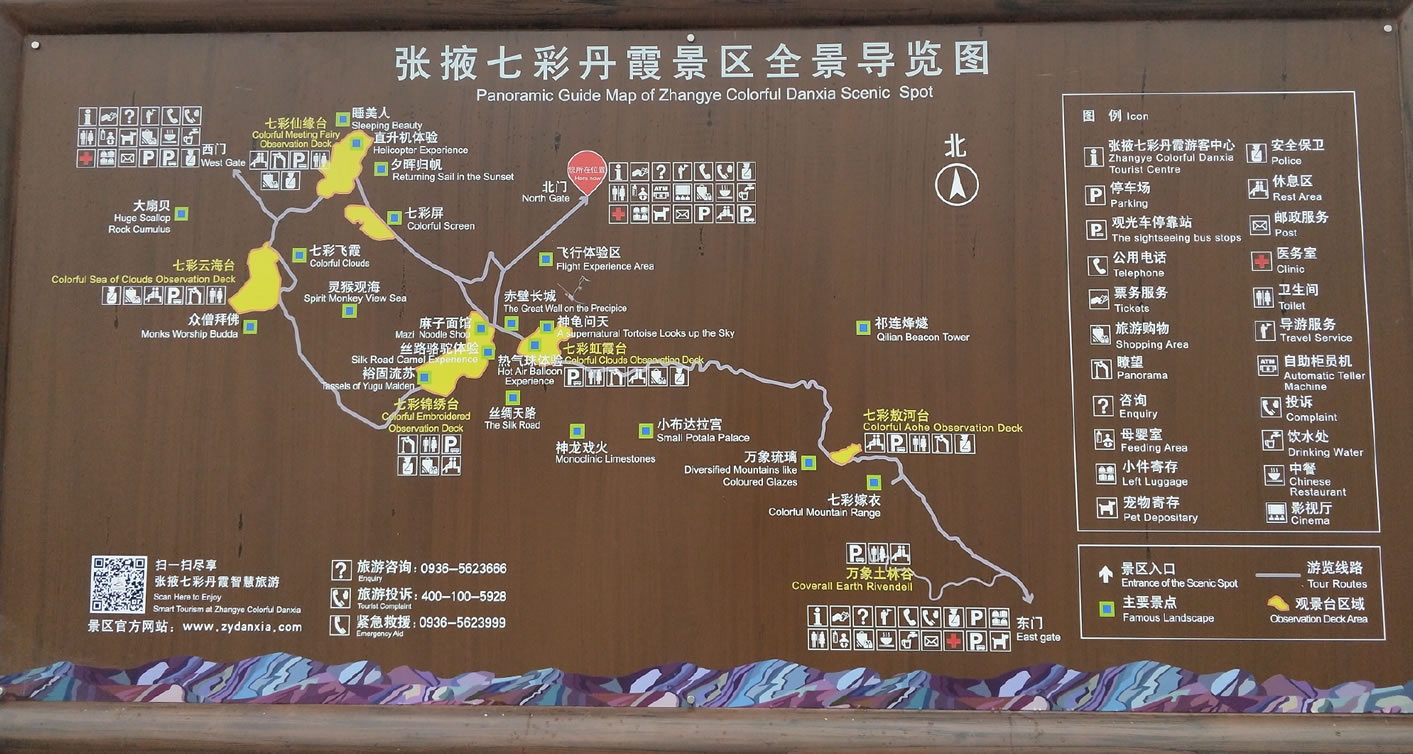七彩丹霞景區(qū)內(nèi)有七彩云海、七彩仙緣、七彩錦繡、七彩虹霞、最佳攝影點(diǎn)、七彩熬河臺(tái)、萬象土林谷等7處觀景臺(tái)。登臨攬勝,薄層狀泥巖、砂質(zhì)泥巖及頁巖互層交錯(cuò),紫紅色、灰綠色、黃綠色、灰黑色等色彩交相輝映,組合有序,極富有韻律感和層次感。神龍戲火、靈猴觀海、眾僧拜佛、大扇貝、七彩屏、睡美人等景點(diǎn)。七彩丹霞景區(qū)集自然和獨(dú)特的人文景觀于一體,體現(xiàn)了西部特有的粗獷雄奇,瑰麗險(xiǎn)絕,氣象萬千。