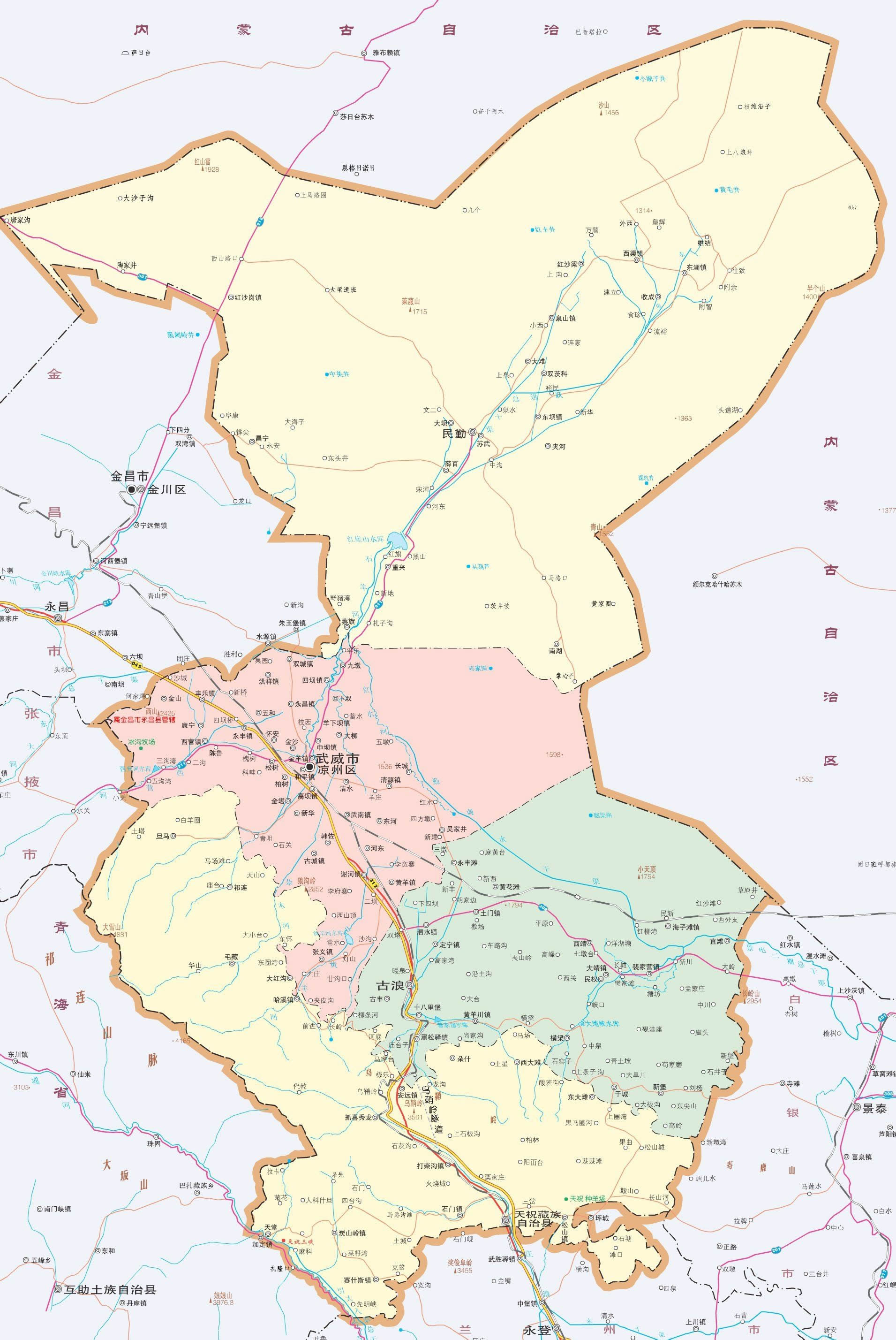 2001年5月,撤銷武威地區(qū)設(shè)立地級武威市,原縣級武威市改稱為涼州區(qū)。武威市人民政府駐地涼州區(qū),轄涼州區(qū)、民勤縣、古浪縣和天祝藏族自治縣共3縣1區(qū)。