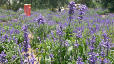 融匯日本北海道富良野的時(shí)尚文化,以薰衣草為主打色,栽植七種不同花卉,盛開色彩繽紛的花帶,黃的、紅的、金的、白的,紫色,綠的、橙的,2萬多平方米的花海,形成一個(gè)巨型的七彩花帶,構(gòu)成一幅大地上的七色彩虹,生動(dòng)而美麗。