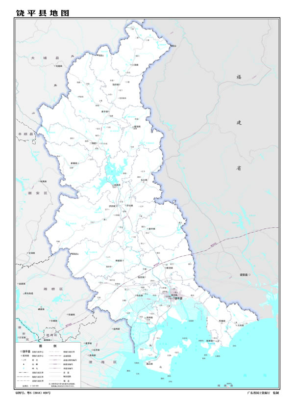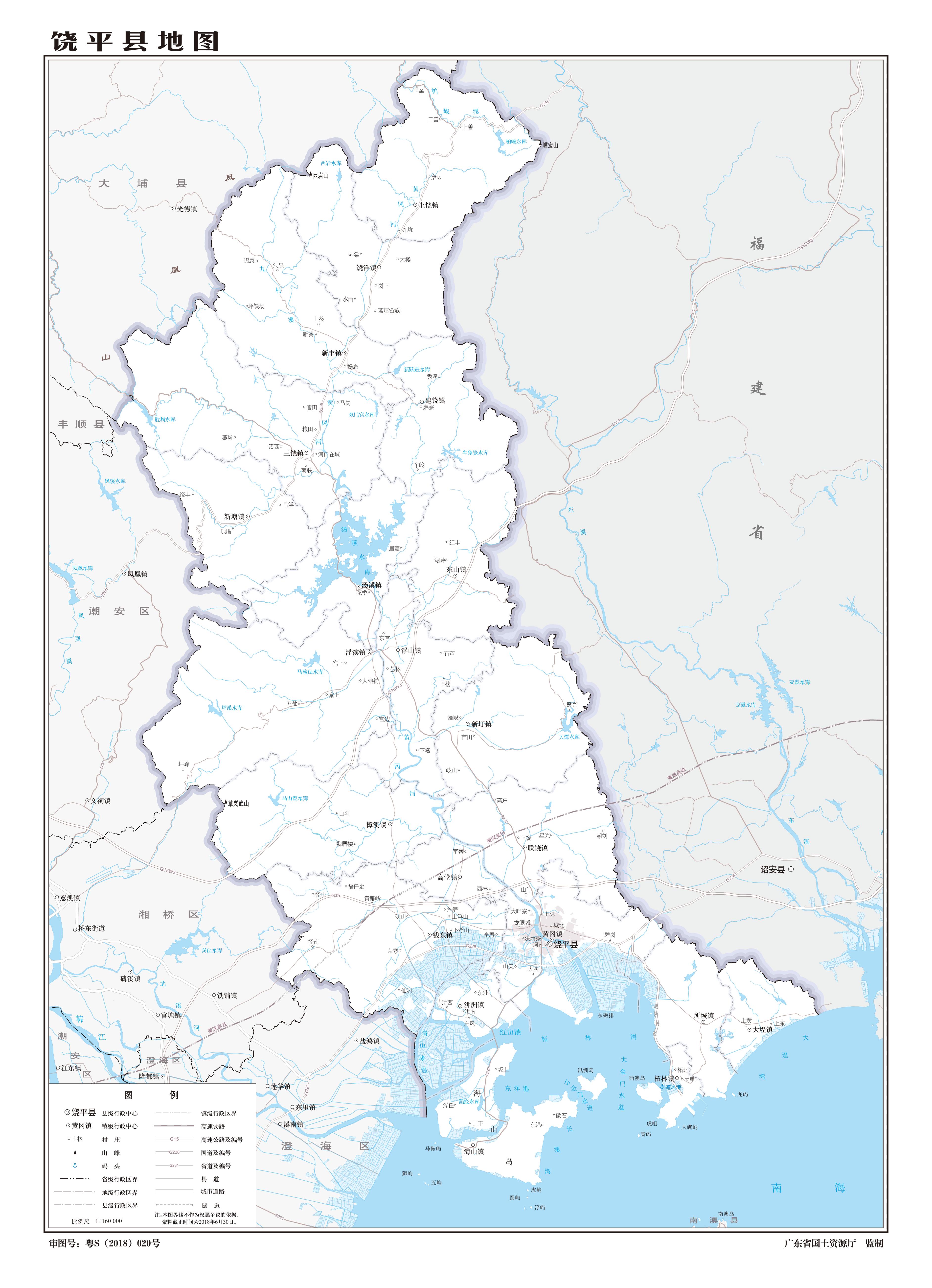 饒平縣,地處廣東省潮州市東部,東鄰福建省,南瀕南海,轄21個(gè)鎮(zhèn)、1個(gè)林場,共394個(gè)村(居)委會(huì)。面積2227平方公里,其中陸域面積1694平方公里,海域面積533平方公里,海島岸線長136公里。2016年末戶籍人口107.1萬人,常住人口87.2萬人。