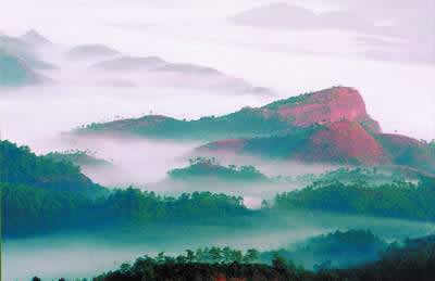 丹霞山不僅風(fēng)景奇秀,而且生物資源豐富。這里屬中亞熱帶季風(fēng)氣候,氣候溫和,雨量充足,年平均溫度20度,年降雨量1640毫米,植物種類繁多,生長茂盛,主要植被為中亞熱帶常綠闊葉林。經(jīng)鑒定樹齡一百年以上的名樹古木有28株,其中三百年以上的有14株,“丹霞梧桐”更是世界上丹霞山最為著名的花卉,其品種有春蘭、寒蘭、白蘭、墨 蘭、劍蘭、蕙蘭、二葉蘭等數(shù)十種,又以白墨、綠墨、鳳尾、報(bào)歲等最為名貴。1987年,這里發(fā)現(xiàn)的一株 “達(dá)摩蘭”更是稀世珍品,當(dāng)時(shí)世界上只發(fā)現(xiàn)兩株(另一株是在臺(tái)灣達(dá)摩廟發(fā)現(xiàn),“達(dá)摩蘭”的名字即由此而來)。這株丹霞達(dá)摩蘭,當(dāng)年在香港年花市出時(shí)標(biāo)價(jià)高達(dá)100萬港元。每到花開季節(jié),丹霞蘭滿山飄香,游人循香覓跡,別有一番情趣。丹霞山區(qū)出產(chǎn)的“白毛尖茶”則是久負(fù)盛名的特產(chǎn),是綠茶中的珍品,清代嘉慶年間曾為宮廷貢品。其茶牙粗壯,密披銀白色的毫毛,茶湯清澈黃亮,味甘醇,有一股天然的蘭花清香,為我國三大白毛名茶之首,曾在林業(yè)部“林業(yè)名優(yōu)物新博覽會(huì)”上榮獲金獎(jiǎng)。