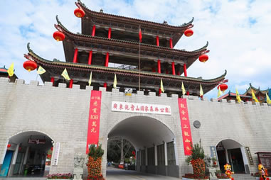 采用清代古城樓建筑風格,飛檐翹角,氣勢恢宏,體現(xiàn)了中國古典建筑之美。內(nèi)設(shè)游客服務(wù)中心和售票處,是游客進入觀音山景區(qū)所看到的第一道靚麗風景。