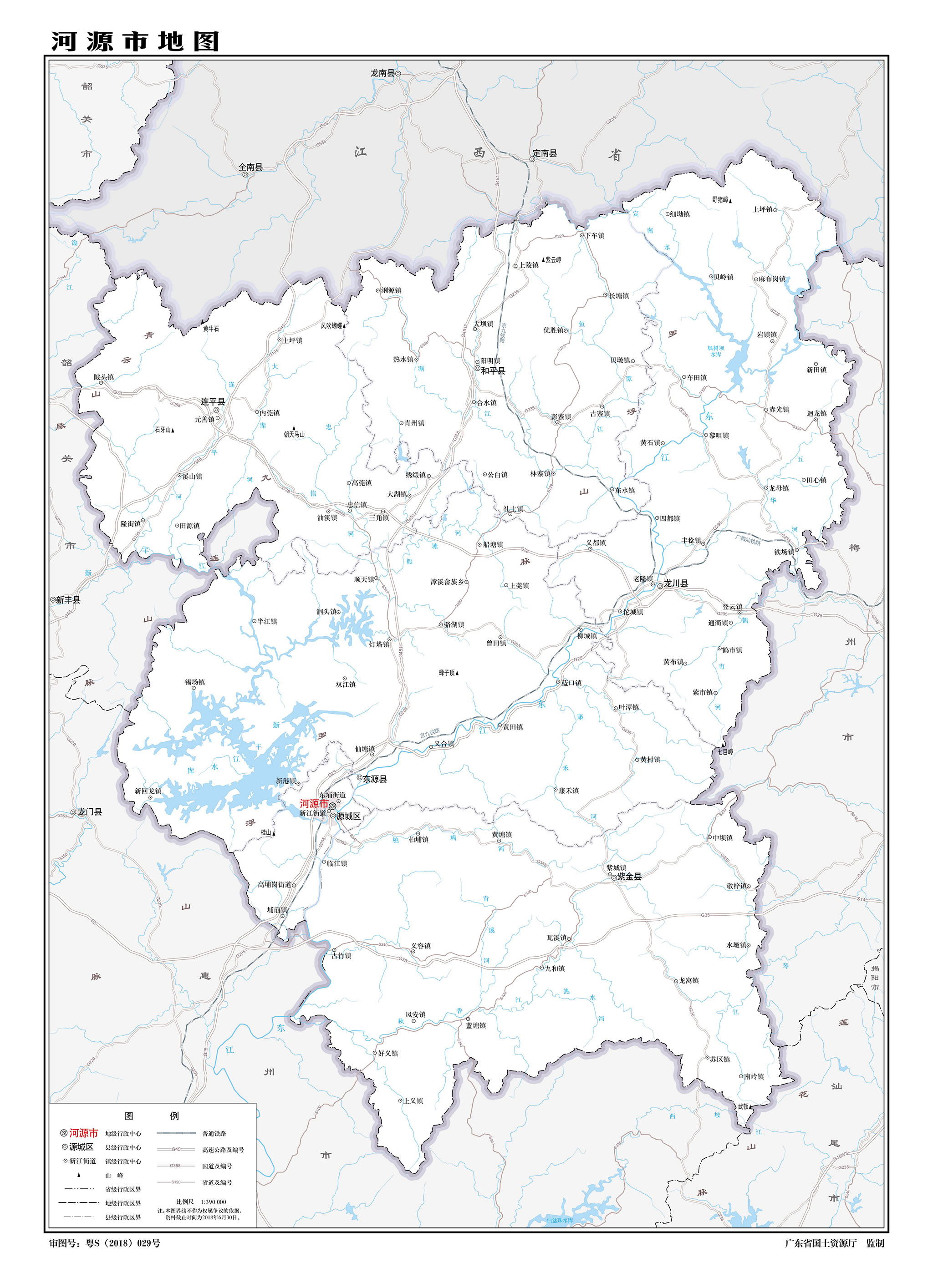 河源市轄1個(gè)市轄區(qū)、5個(gè)縣: